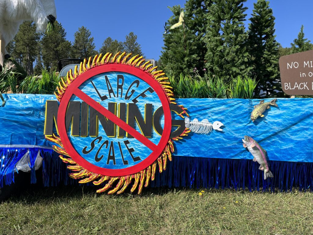 We are very excited that our gorgeous 26-foot float featured the wildlife of our area, who do not have a voice of their own, so we need to speak up on their behalf to protect their Black Hills. Of course, our float was one of the best floats in the parade – hands down. Igmu tanka (mountain lion), wanbli (eagle), Pte ska (the white female buffalo) named Mni (Water), and others were featured, along with the words “Water is Life.” Our Fish People (volunteers wearing fish masks) flanked the float, handing out flyers with information regarding the current active mining claims circling Custer.