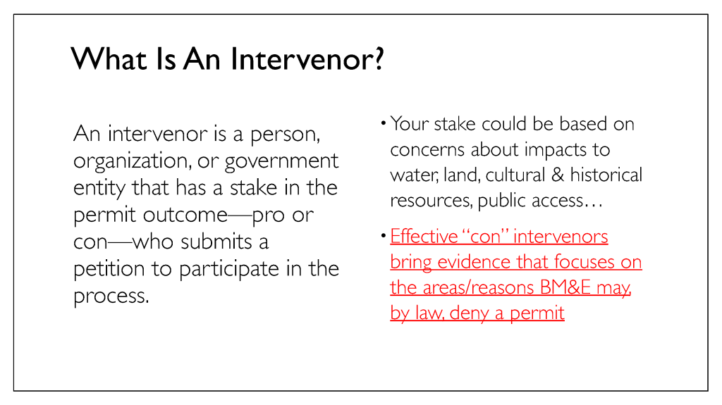 Public comments and letters of intervention for the state hearing on this proposed intervention are now being accepted.