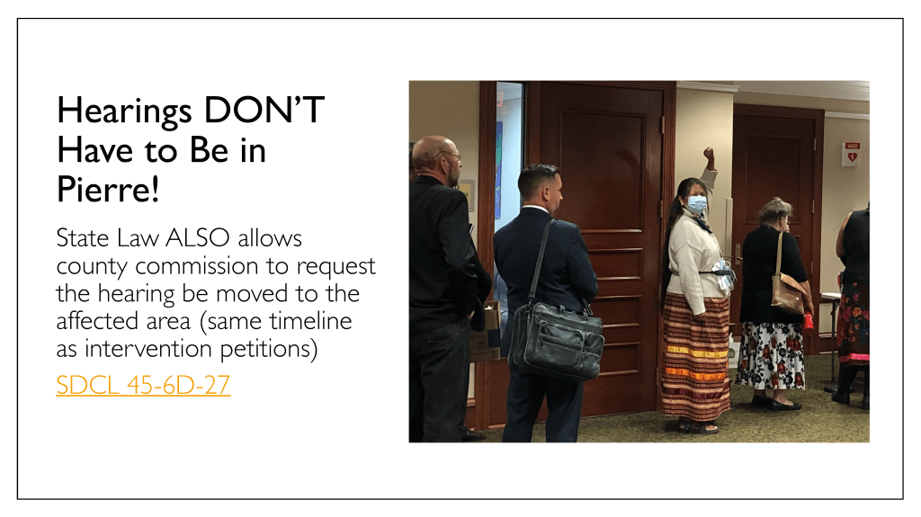 Intervention requests must be submitted to the Minerals, Mining, and Superfund Program, 523 East Capitol Avenue, Pierre, South Dakota 57501-3182.” Intervener letters MUST BE MAILED! We encourage you to send your letter in on Friday, May 9, but if you can’t, just be sure to mail it by Wednesday, May 14. Send registered mail if possible to track delivery. Ask for the hearing to be moved to Fall River County or Rapid City.