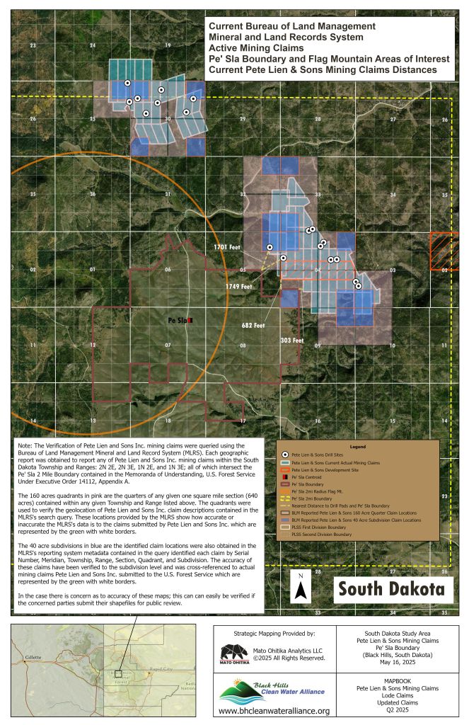 We can’t tell by the vague maps the mining company provide, but we now have a new map that does show some of the proposed drill pads are within the Pe’ Sla (/pay-shlaw/) boundary.