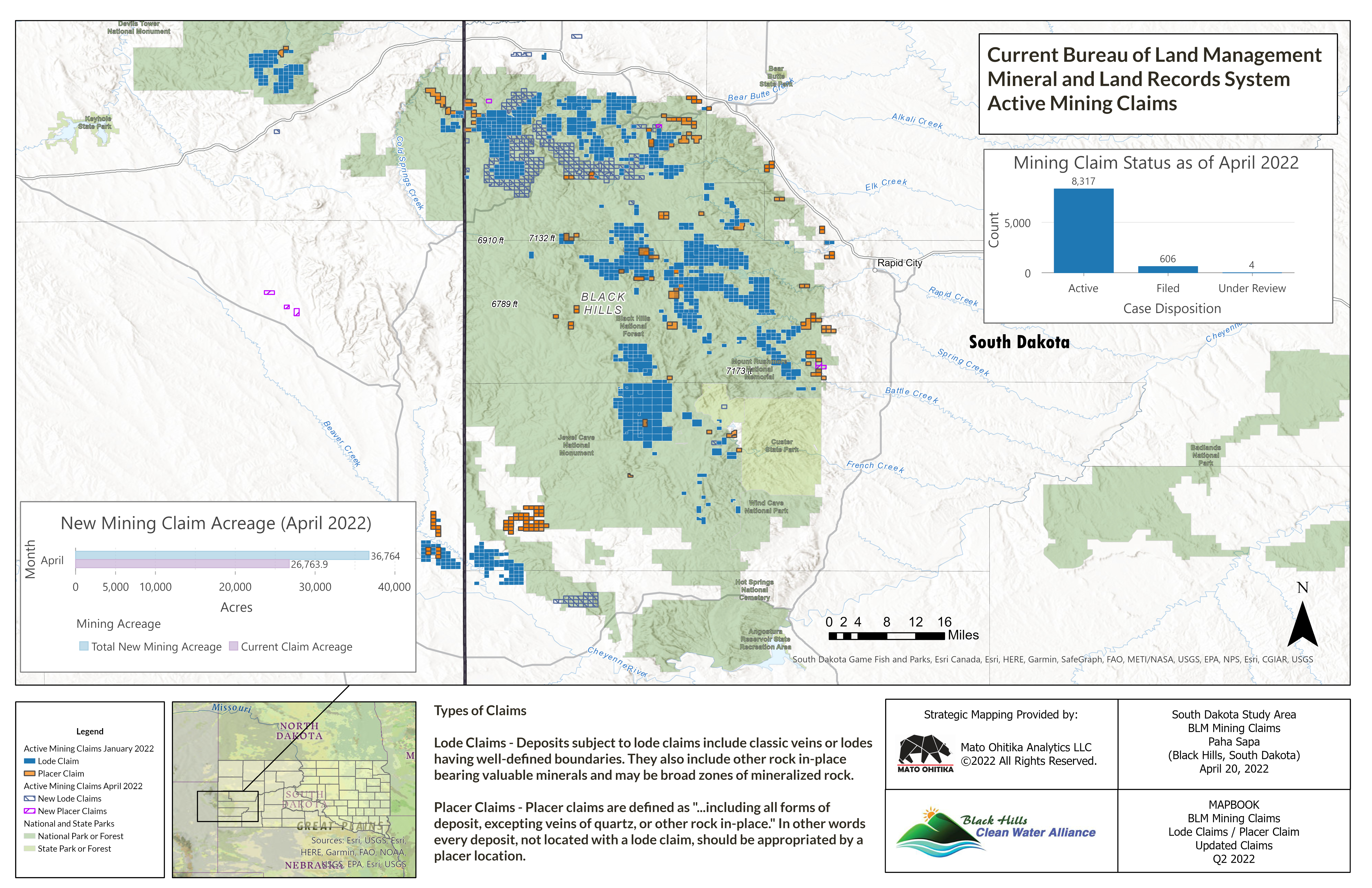 184,000 acres of active mining claims in the Black Hills as of April 20, 2022