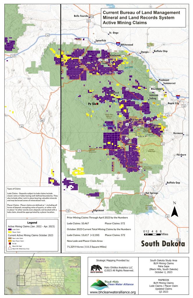 This Claims Map shows about 293,000 acres of active mining claims in the Black Hills in October 2023. This is more than 20% of the Black Hills!
