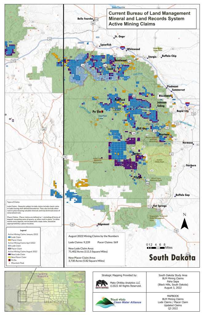 202,000 acres of active mining claims in the Black Hills as of August 9, 2022