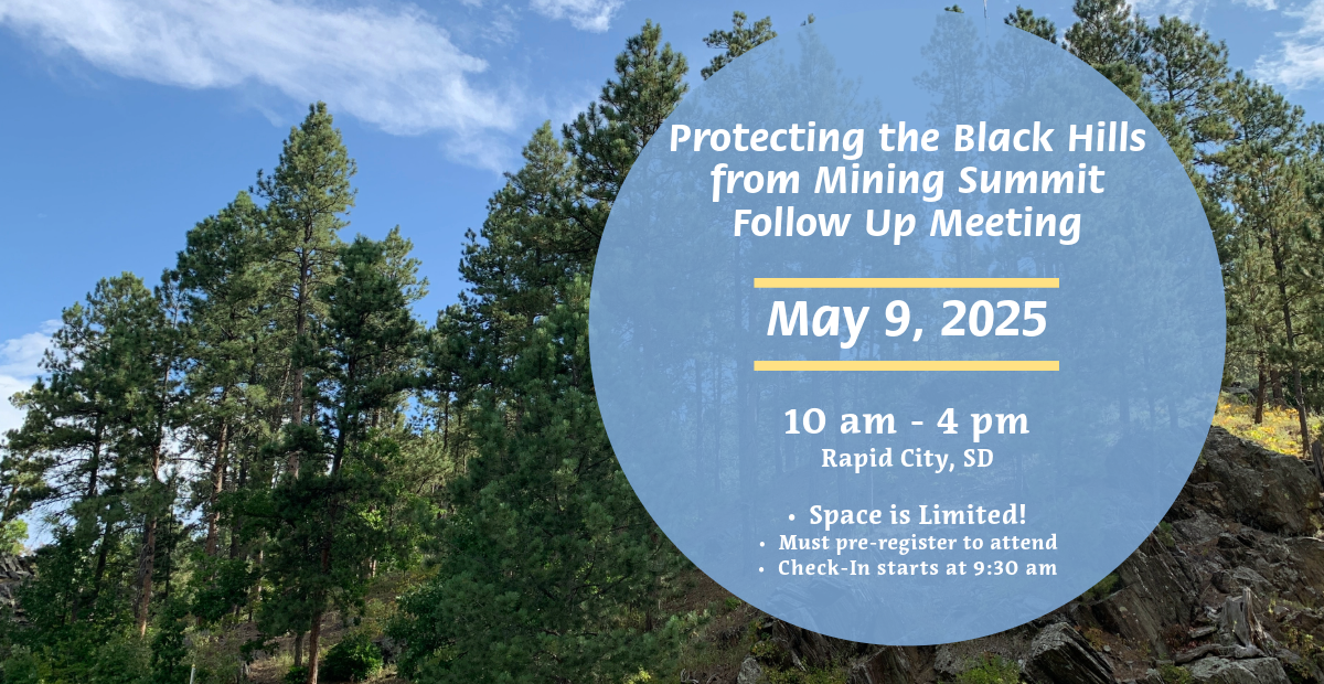 May 9 – Summit Follow Up Meeting where you’ll received updates and participate in the continuation of our work to protect Black Hills water from mining.