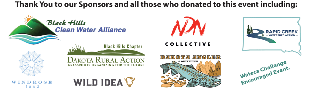 Thank You to our Sponsors: Black Hills Clean Water Alliance, NDN Collective, Dakota Rural Action, Rapid Creek Watershed Action, and all those who donated to this event including Wild Idea Buffalo, Dakota Angler and Outfitter, Windrose Fund, and others.